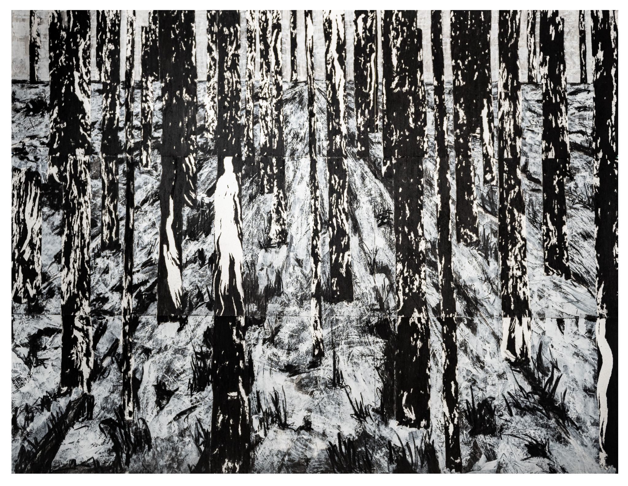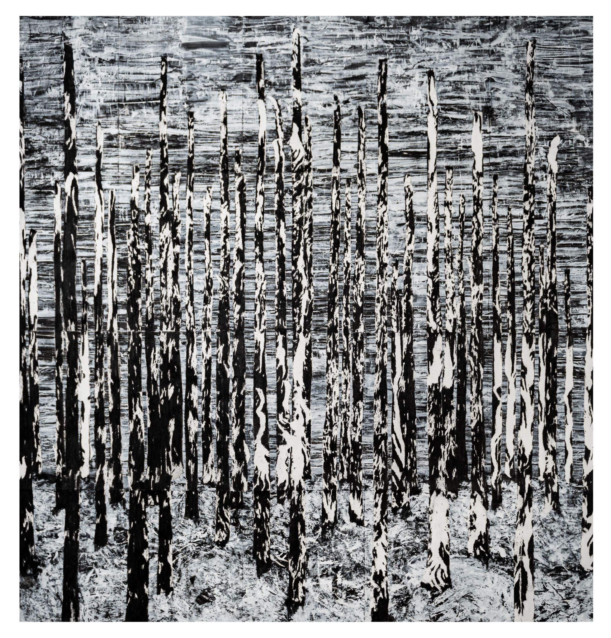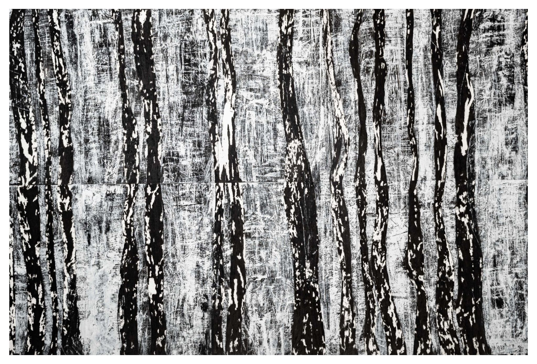 «Bosques Negros» es una serie que nos introduce en paisajes donde el tiempo parece haberse detenido, un espacio sombrío e inhabitado que resuena con las profundidades de la psique humana. Cada obra nos lleva a un bosque cubierto de hielo, un «no lugar» donde la naturaleza no acoge, sino que confronta. Estos entornos se convierten en un espejo de nuestra desolación, angustia y fragilidad existencial.
