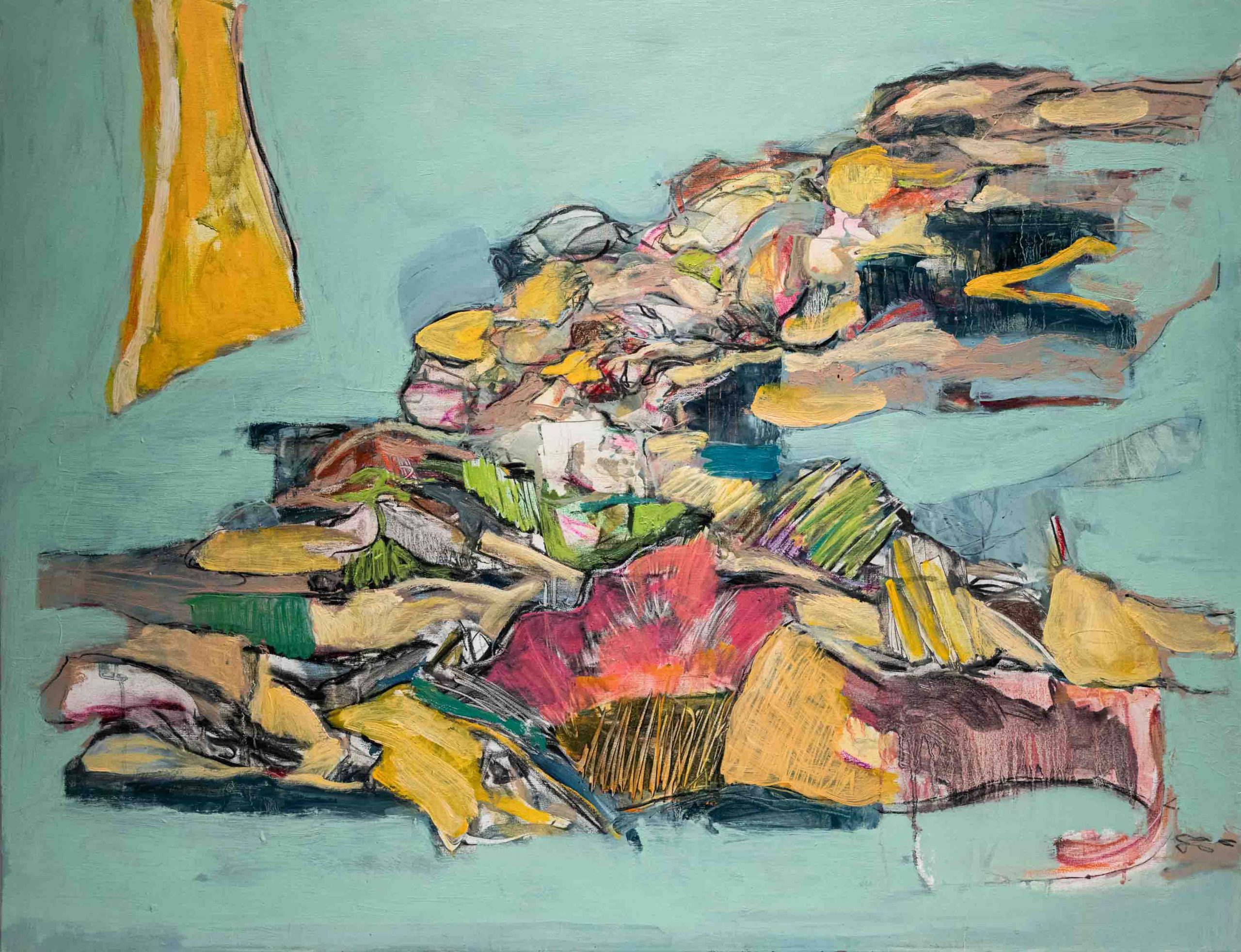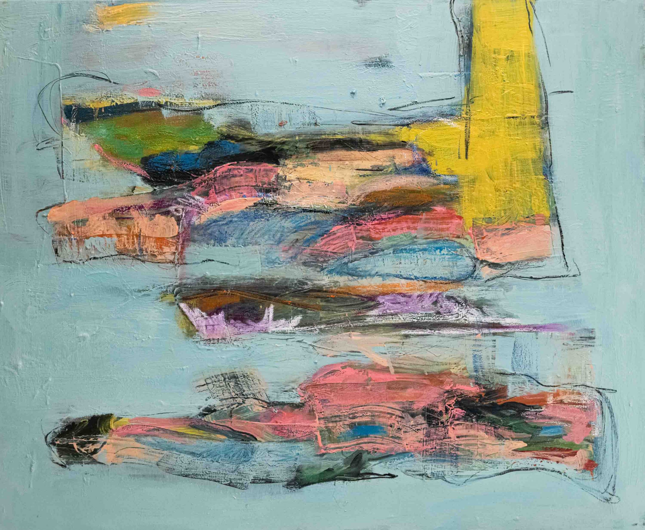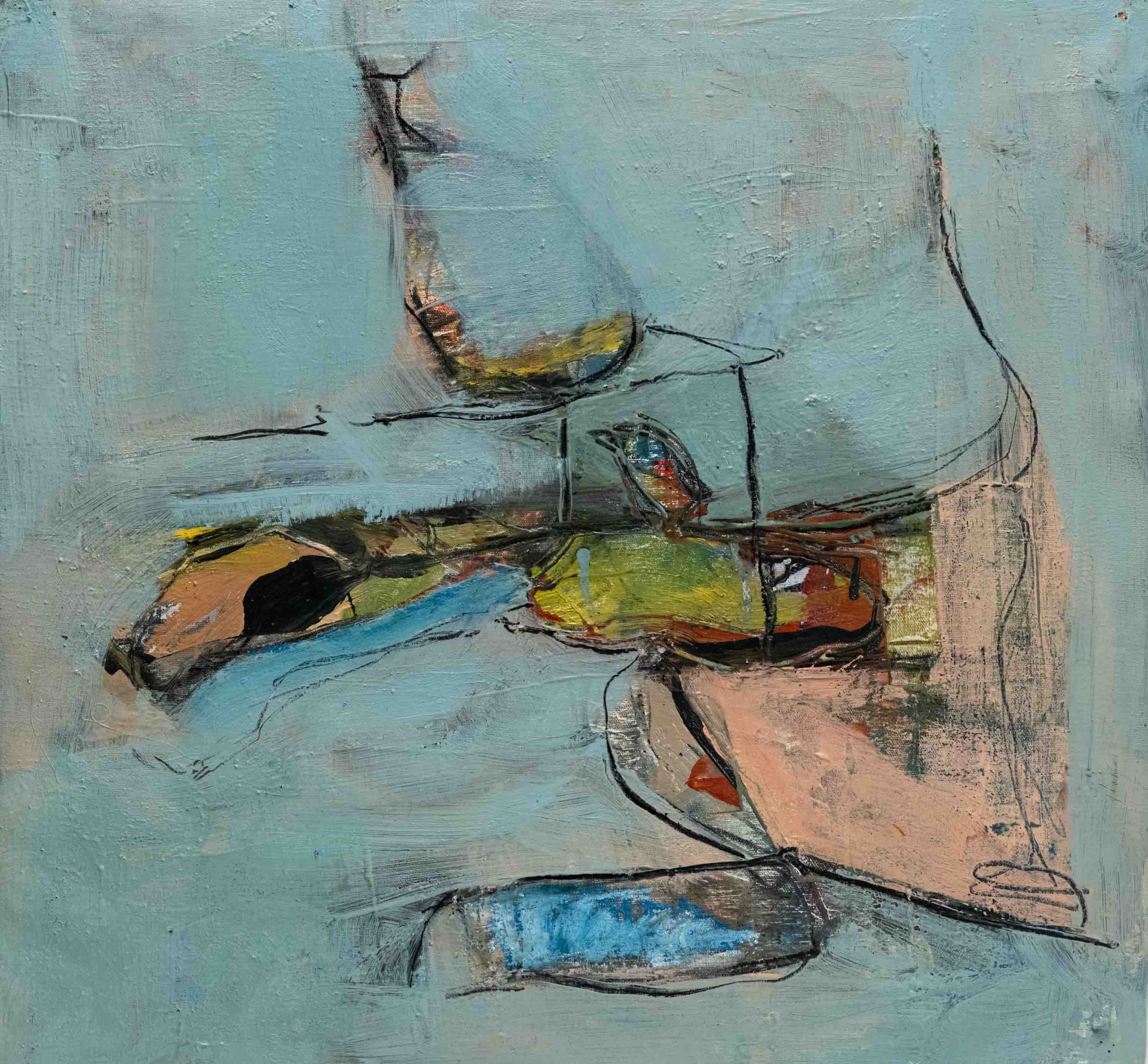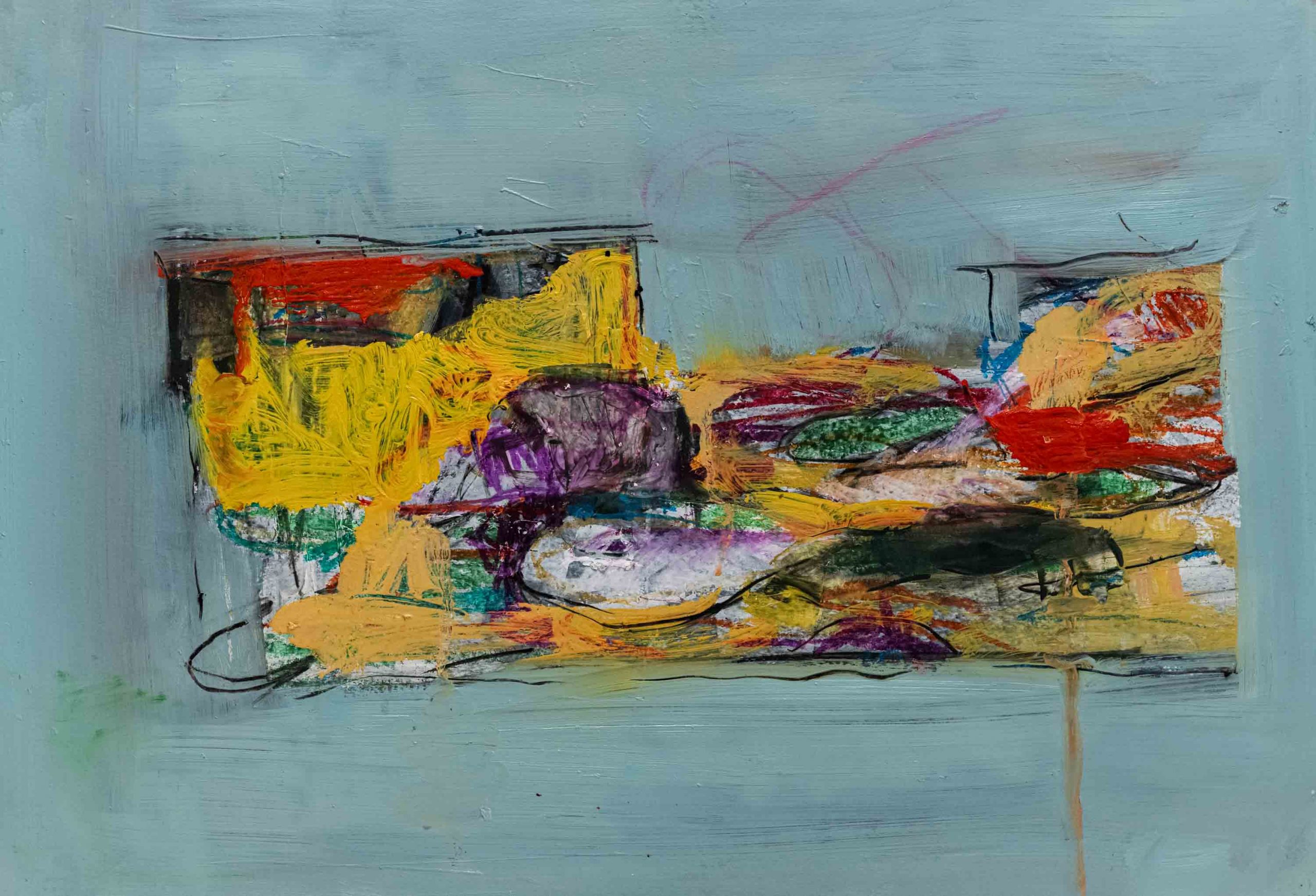 Mostrar más El tratamiento de la materia pictórica es fundamental en esta propuesta. A través de capas de color superpuestas y trazos deliberados se establece una conexión entre lo táctil y lo visual. Las texturas vibrantes y las formas fragmentadas sugieren paisajes internos, al tiempo que revelan el proceso de la obra. En contraste con la energía dinámica de sus trazos, la paleta cromática de la serie evoca una serenidad contemplativa. Los tonos pastel, en diálogo con colores más saturados, crean un equilibrio entre lo introspectivo y lo vibrante. Este uso del color como medio expresivo no busca representar una realidad externa, sino traducir sensaciones y emociones que emergen de la interacción con lo cotidiano. Lo Que Queda es, en última instancia, una invitación a mirar más de cerca, a reconsiderar la importancia de lo que nos rodea y a descubrir, a través de la abstracción, un espacio donde lo cotidiano y lo trascendental se encuentran. Es un testimonio del poder del arte para transformar nuestra percepción, revelando la magia inherente a lo que a menudo damos por sentado. Piedras Violetas Montaña de Aire Limones Vermut Pececito Pajarito sobre Dragoncito Sombras de Verano Mesa con Nube Desorden