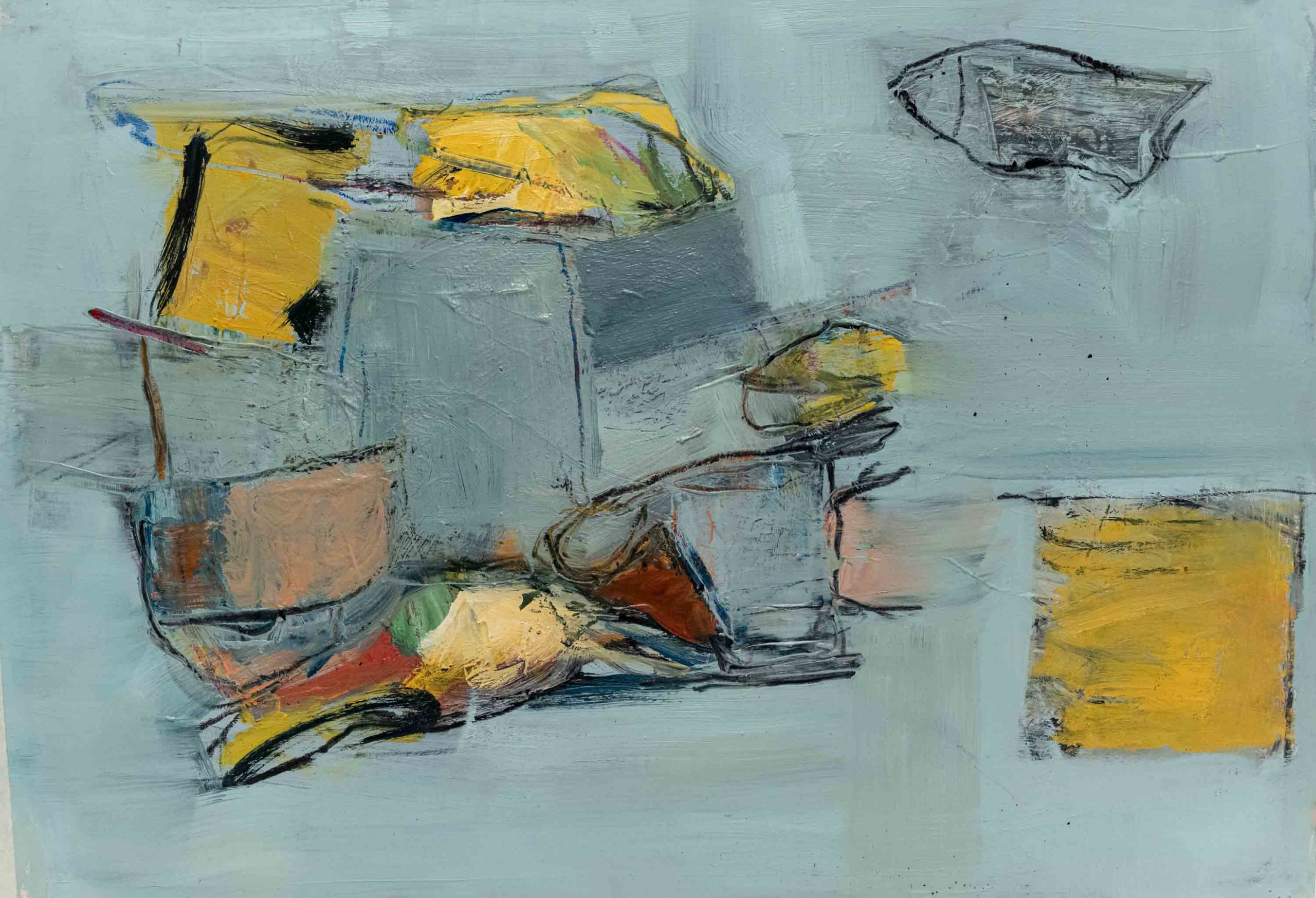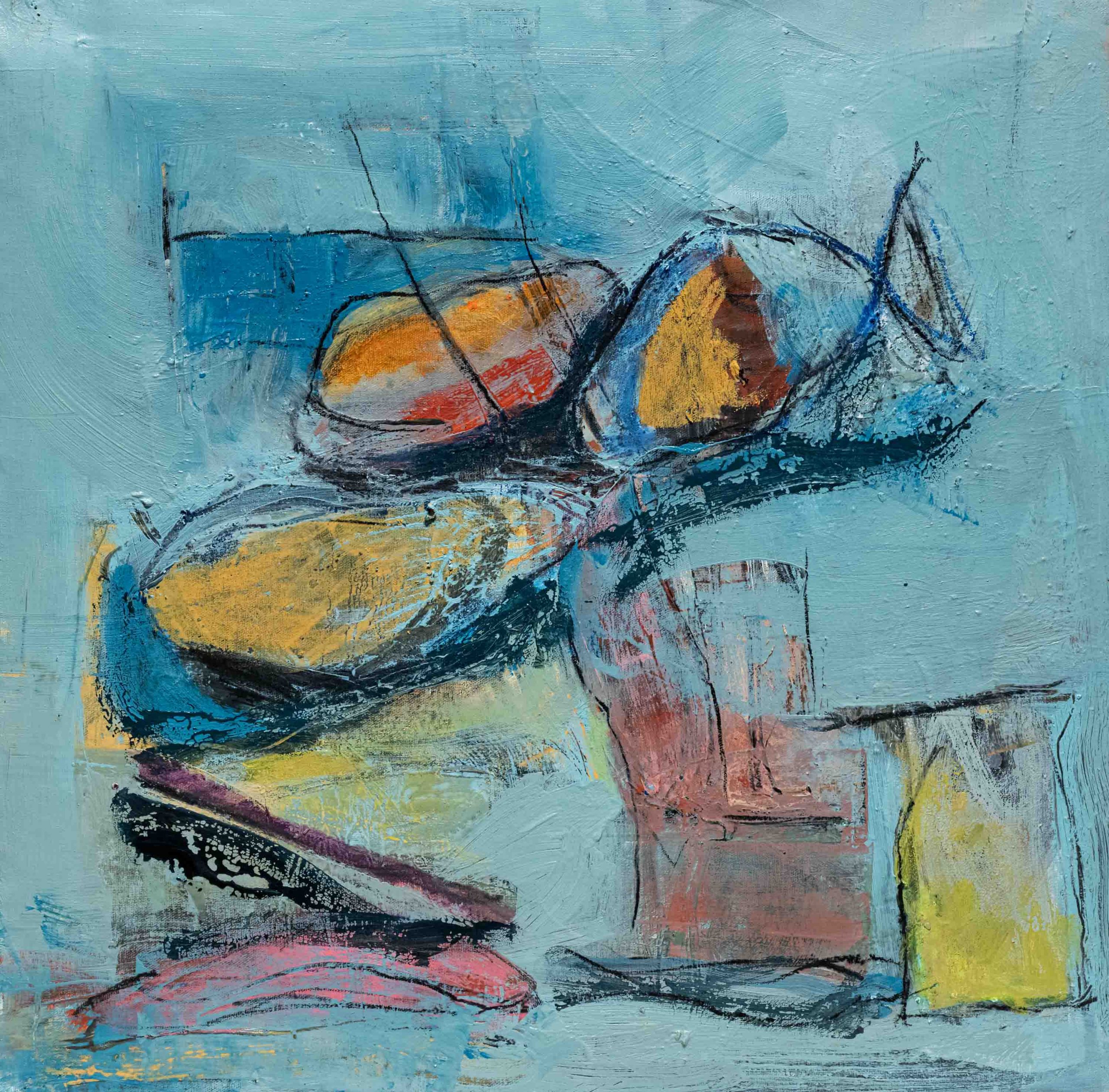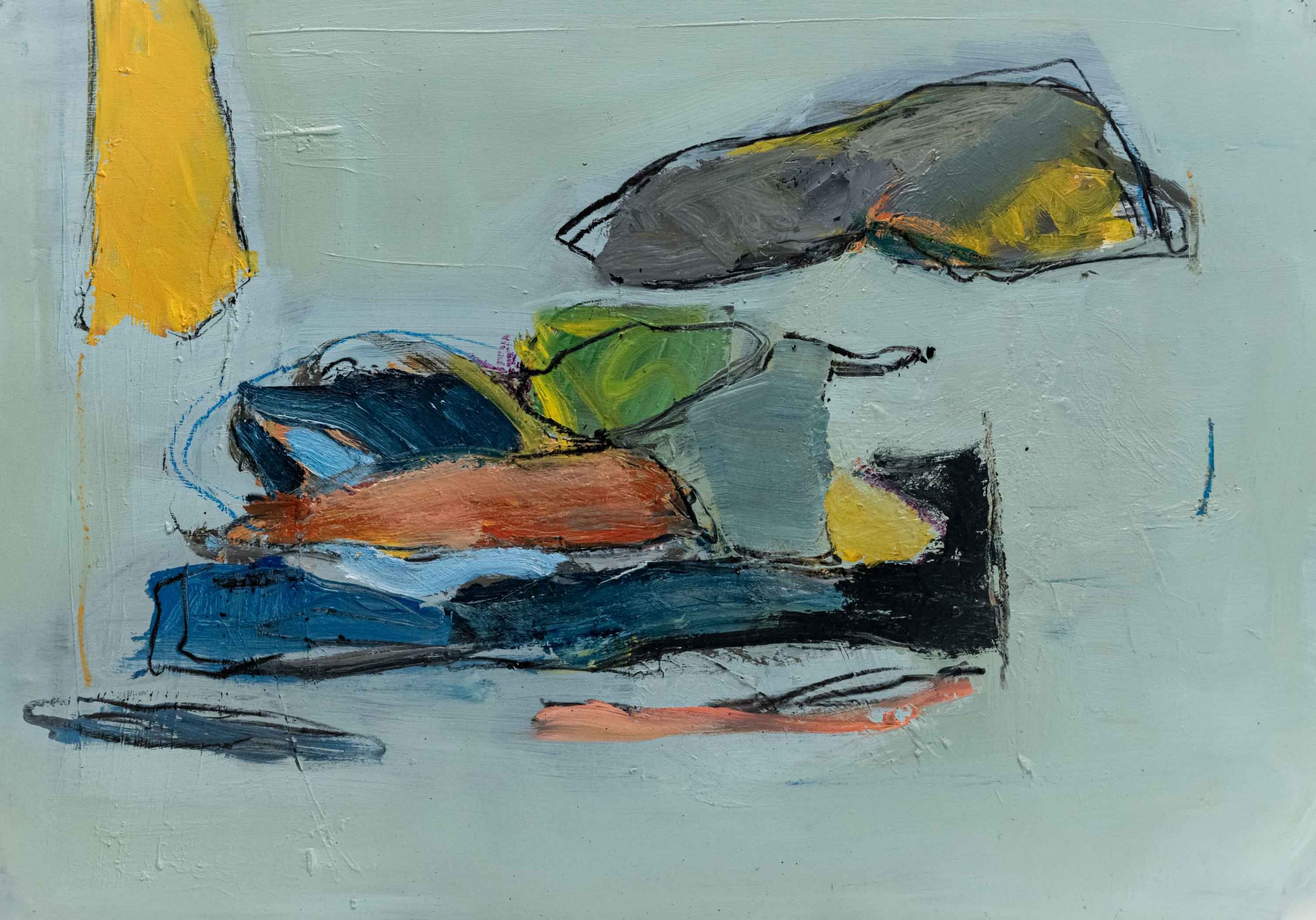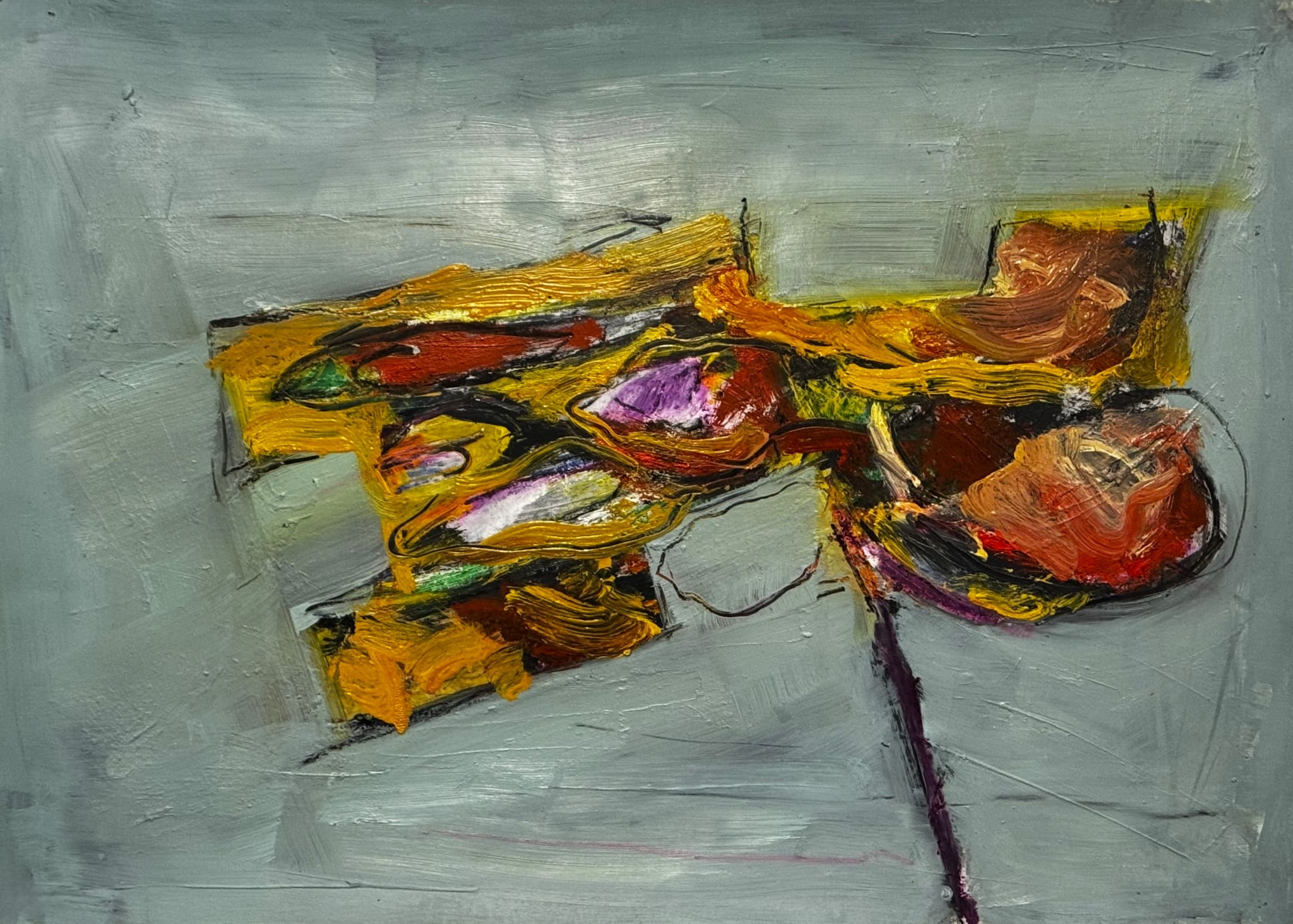 Mostrar más El tratamiento de la materia pictórica es fundamental en esta propuesta. A través de capas de color superpuestas y trazos deliberados se establece una conexión entre lo táctil y lo visual. Las texturas vibrantes y las formas fragmentadas sugieren paisajes internos, al tiempo que revelan el proceso de la obra. En contraste con la energía dinámica de sus trazos, la paleta cromática de la serie evoca una serenidad contemplativa. Los tonos pastel, en diálogo con colores más saturados, crean un equilibrio entre lo introspectivo y lo vibrante. Este uso del color como medio expresivo no busca representar una realidad externa, sino traducir sensaciones y emociones que emergen de la interacción con lo cotidiano. Lo Que Queda es, en última instancia, una invitación a mirar más de cerca, a reconsiderar la importancia de lo que nos rodea y a descubrir, a través de la abstracción, un espacio donde lo cotidiano y lo trascendental se encuentran. Es un testimonio del poder del arte para transformar nuestra percepción, revelando la magia inherente a lo que a menudo damos por sentado. Piedras Violetas Montaña de Aire Limones Vermut Pececito Pajarito sobre Dragoncito Sombras de Verano Mesa con Nube Desorden